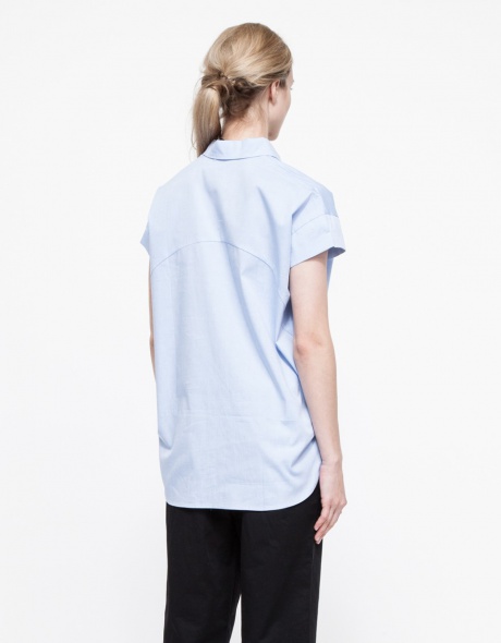 From Stelen, a button front blouse with a geometric cut hemline. Features a rounded front hem, a longer back hem, cuffed sleeves, and a pointed collar ...Read more
